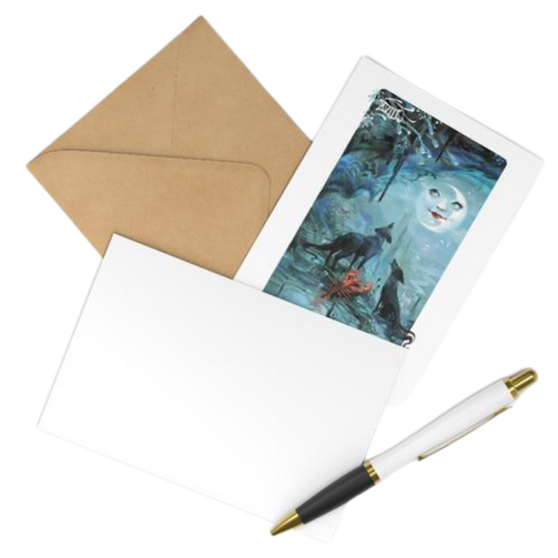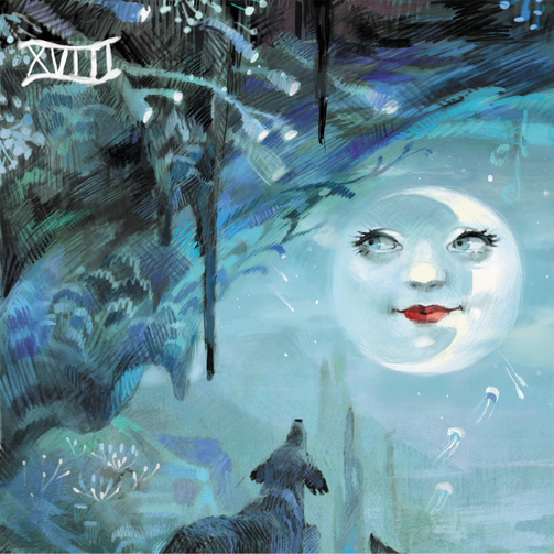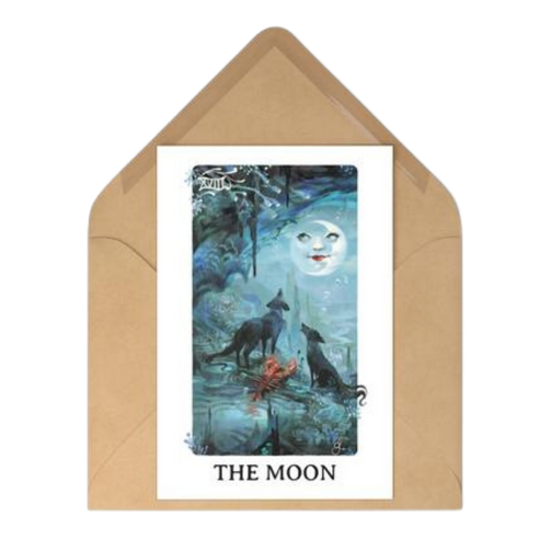 I kept the two wolves (but adjusted them to be more shadowy) and crayfish from the original card. They are meant to represent intuition and tapping into the unknown."